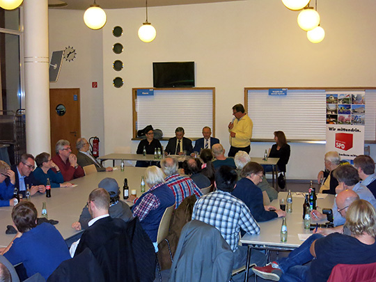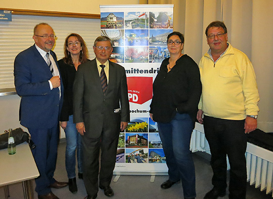 v. l. Gaby Spork, Prof. Dr. Christoph Zöpel, Axel Schäfer, Reiner Lehmkuhl, Simone Gottschlich | Foto: G. Mlynarczyk Bis auf den letzten Platz besetzt war der große Saal im Ottilie-Schoenewald-Kolleg am vergangenen Donnerstagabend.