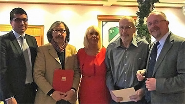 H.- J. Spinner und R. Sebastian wurden von S. Yüksel (l.), Axel Schäfer (r.) und Annegret Drobing geehrt. Axel Schäfer und Serdar Yüksel gratulierten