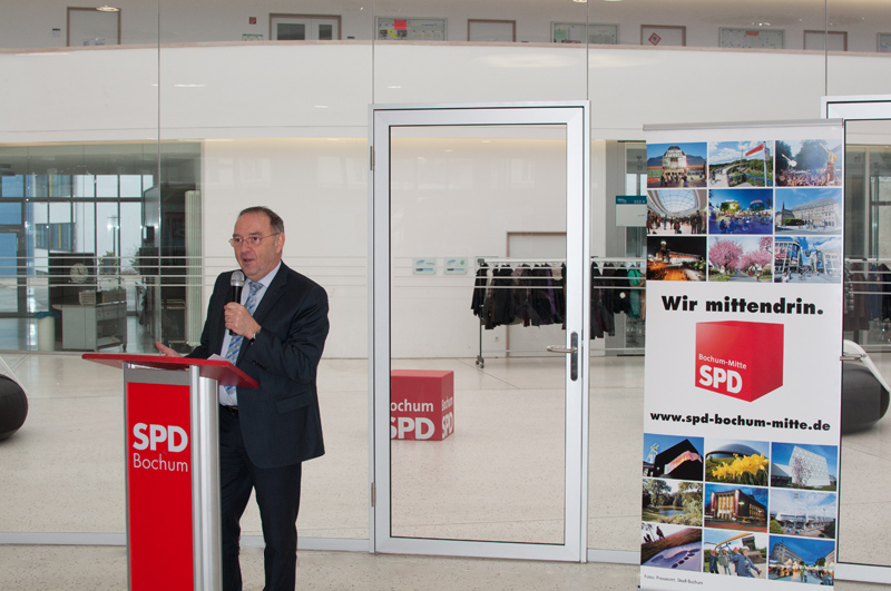 Im Wissen um viele unterschiedliche Aspekte des Themas unseres Ehrengastes -NRW Finanzminister Norbert Walter-Borjans- „Gute Finanzen, gut für NRW“ bereiteten unser Bochumer Parteivorsitzender Karsten Rudolph, Oberbürgermeister Thomas Eiskirch und unser Bochumer Bundestagsabgeordneter und stellv. SPD Bundestagsfraktionsvorsitzender Axel Schäfer, mit einleitenden und insbesondere zu Bochum den Bezug herstellenden Beiträgen das Publikum auf Minister Walter-Borjans spannende Darlegung der aktuellen Finanzpolitik unseres Landes NRW vor.
