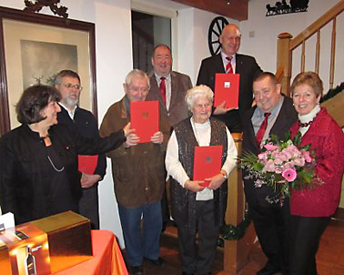 Untere Reihe v.r. Angelica Schwall-Düren, Ministerin, Reiner Gräser, Charlotte Eisfeld 40 Jahre, Richard Erny 65 Jahre, Ulrich Schildberg 40 Jahre, Marianne Wallach.