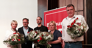 Karsten Rudolph und Carina Gödecke bedankten sich bei Thomas Eiskirch und den nicht erneut zur Wahl angetretenen Vorstandsmitgliedern Martina Schmück-Glock, Nicole Sehrig, Sebastian Hammer und Guido Mlynarczyk für ihre hervorragend geleistete Arbeit und ihren Einsatz für die SPD-Bochum.