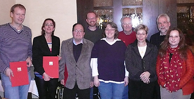 Jubilare: Carsten Kreutz (25 Jahre Mitglied), OV-Vorsitzende Simone Gottschlich (25 Jahre), Wolfgang Löhr (40-jährige Mitgliedschaft); Neueintritte: Axel Striebeck, Deborah Rotermund, Roland Stolze; Landtagspräsidentin Carina Gödecke, Altenbochumer Ratsherr Frank Saade, Solveigh Horstmann (Neueintritt)."