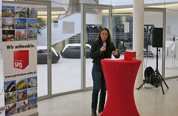 Die SPD-Generalsekretärin Yasmin Fahimi punktete erst einmal direkt mit einem Bekenntnis zu Bochum – denn früher hatte sie in der Nähe des Bermuda3ecks an einer Parallelstraße zur Königsallee gewohnt. Fahimi kritisierte scharf die PEGIDA-Bewegung. Nachdem sie erfahren hatte, dass andere Politiker, Journalisten und Rechtsanwälte mit fremd klingenden Namen ebenso wie Sie Drohbriefe bekommen hätten, wollte sie zeigen, wie die Anhänger von PEGIDA argumentieren und handeln.