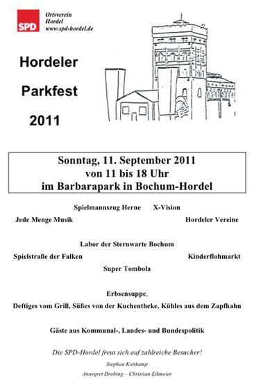 Am 11. September ist es soweit: Die SPD Hordel lädt ein zu ihrem traditionellen Parkfest!